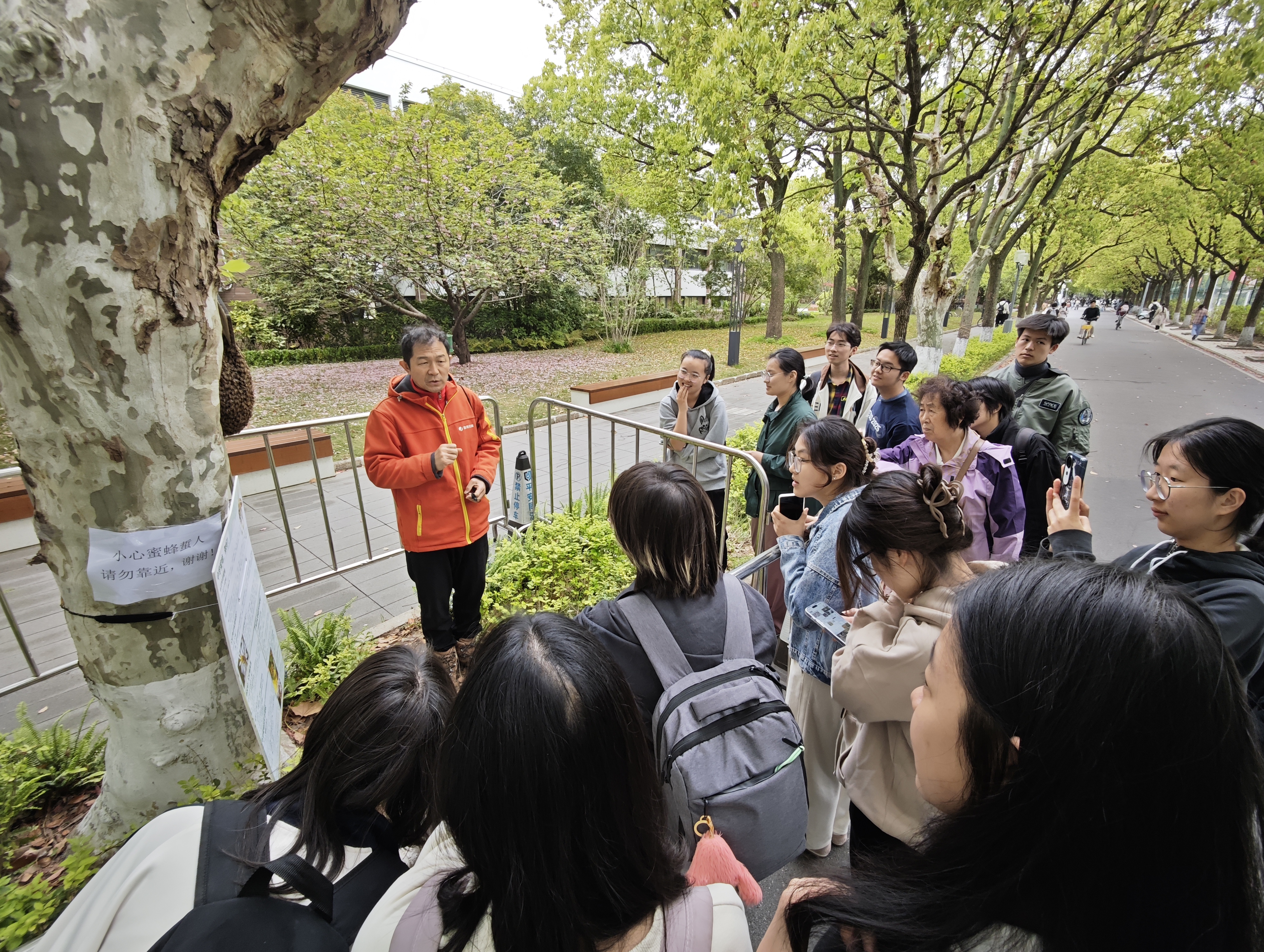 4月22日,在校外参加世界地球日活动时,他特意找到现场的两位养蜂专家,加了微信。他在为这群蜜蜂的下一步做打算:那棵悬铃木毕竟在主干道上,人流量大,如果需要,就求助专家,把它们迁移到附近更安全的去处。