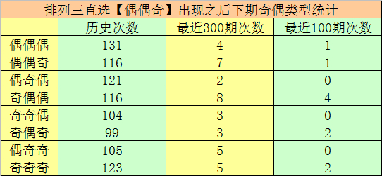 排列三第2025313期奖号为445,直选奇偶分布为:偶偶奇,该奇偶分布历史上共出现了916次,前100期出现11次。