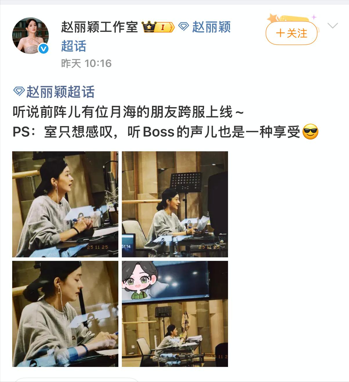 但之后她还是会有新剧《造城者》播出,她的工作室还放出了她配音的照片。