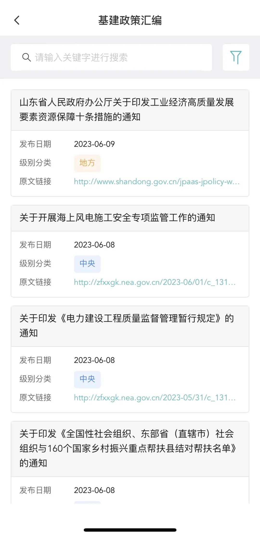 系统搭建覆盖中央和地方两级、数据实时更新的基础设施投融资政策库,涉及新基建、交通运输、乡村振兴、EOD及城市更新等相关领域热点资讯;行业重点、热点专题定期进行专项汇编,政策内容一目了然;每月推送明树基建投融资数字化专家组发布的政策报告。